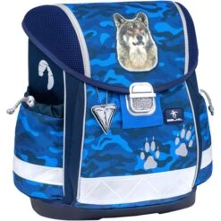 Belmil Schulranzen Classy Alpha Wolf 403-13/AG/S, Für Jungen, Blau, 4-teiliges Set