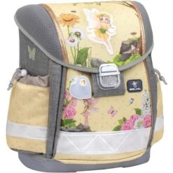 Belmil Schulranzen Classy Fairy Garden 403-13/AG/S, Für Mädchen, Gelb / Grau, 4-teiliges Set