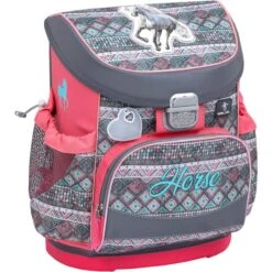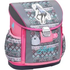 Belmil Schulranzen Mini Fit Horse Aruba Blue, 405-33, Für Mädchen, Grau / Pink, 4-teiliges Set