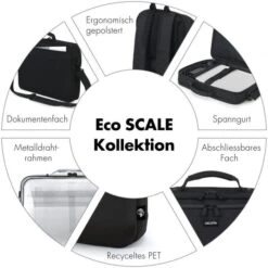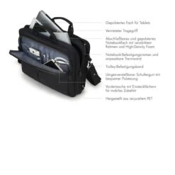 • Auf der Rückseite ein Dokumentenfach und Trolleybefestigung