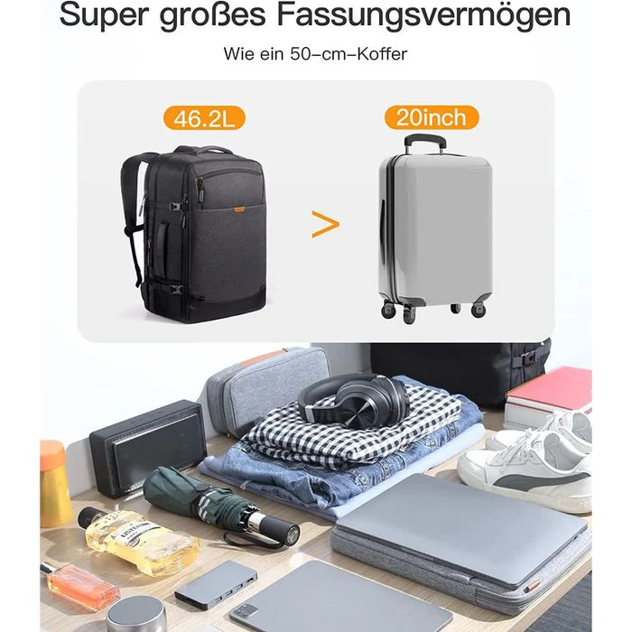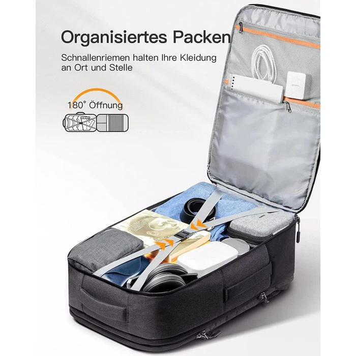 • Extrem geräumiges Hauptfach lässt sich wie ein Koffer (um 180°) öffnen