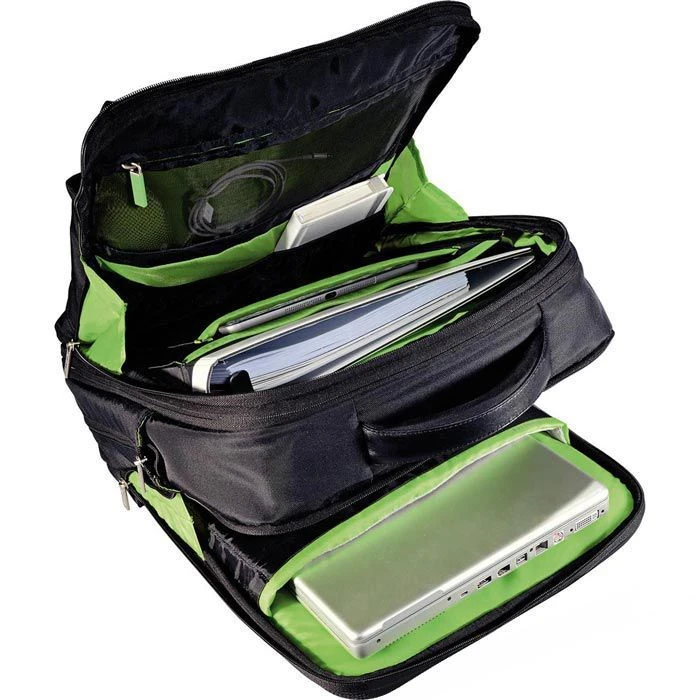 sonstiges: gepolstertes Laptopfach bis 15,6 Zoll, Tabletfach bis 10 Zoll, zwei Hauptfächer, A4-Dokumentenfach mit Organizer bestehend aus Handyfach, Netzfach, Visitenkartenfach, Stiftehalter, Schlüsselhalter und Reinigungstuch, kleines Frontfach und Handyfach mit Kopfhörerausgang, seitliches Reißverschlussfach, seitliche Netztasche, ergonomischer Tragegriff aus Echt Leder, atmungsaktive Rückenpolsterung, gepolsterte Schultergurte, Brustgurt, herausnehmbares Etui für Netzgerät und Kabel, Schnellzugrifffach für Tablet-PC oder E-Book-Reader