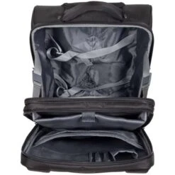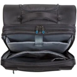 sonstiges: zwei geräumige Hauptfächer, eins davon mit Laptopfach, drei Stiftschlaufen, sechs Einsteckfächer und ein Handyfach, das andere mit Overnight-Funktion und Befestigungsriemen, zwei Reißverschlussvortaschen, ein weiteres kleines Reißverschlussfach im Inneren, verdecktes Adressfeld auf der Rückseite, ergonomischer Tragegriff, Teleskopstange mit mehreren Längenstufen, mit zwei Präzisionslaufrollen