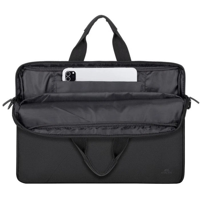 • Frontfach mit Reißverschluss mit Organizer für Handy, Visitenkarten usw.