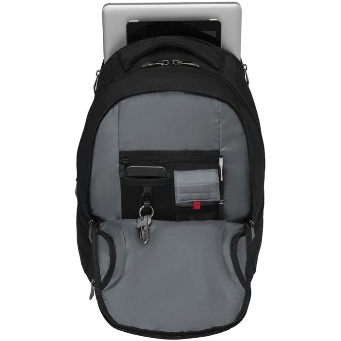 sonstiges: gepolstertes Laptopfach mit Sicherung bis 16 Zoll sowie ein Tabletfach bis 10 Zoll, 2 Hauptfächer, Frontfach mit Organizer bestehend aus Handyfach, Netzfach, Visitenkartenfach und Schlüsselhalter, 2 seitliche Taschen, ergonomischer Tragegriff, atmungsaktive Rückenpolsterung, ergonomische Schultergurte, hohe Standfestigkeit durch Bodenplattform, Kompressionsgurt, Schnellzugrifffach für Handy oder Schlüssel